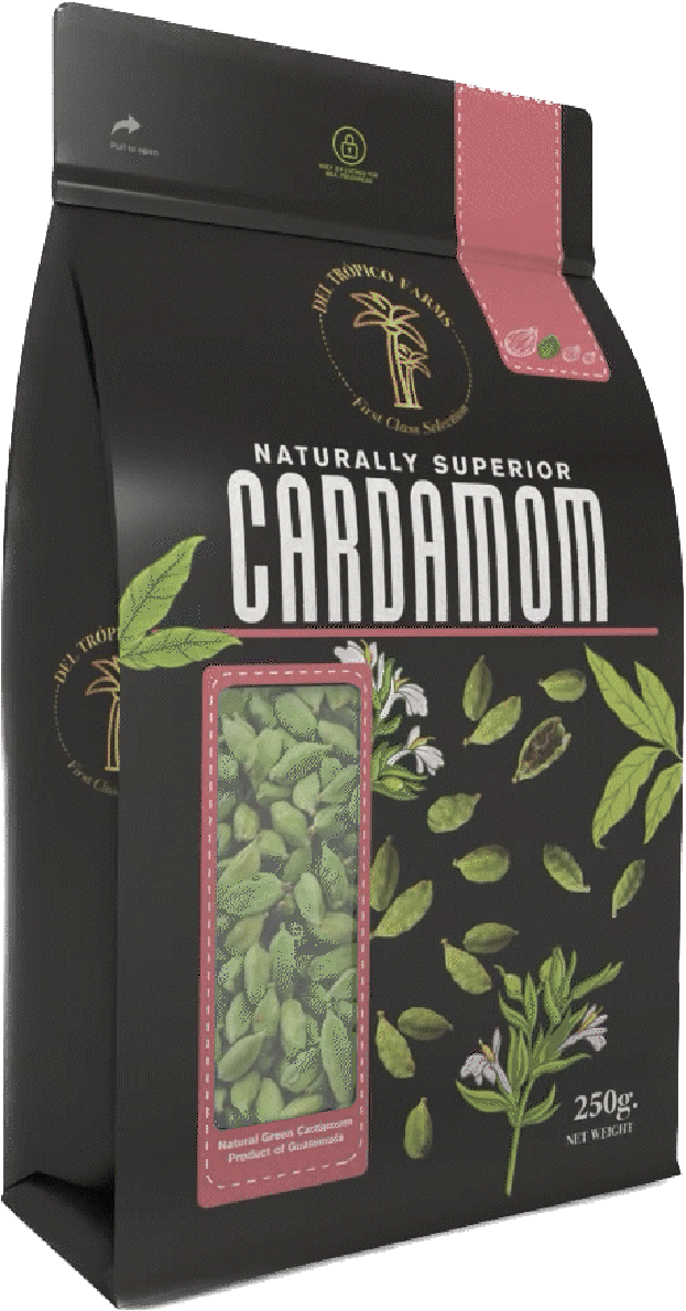 Del Trópico Farms, is simply a taste of the best green cardamom from Guatemala. We source our products from our farms, which offer the best growing conditions and are committed to protect the environment and local communities. Our cardamom is handpicked, ecologically dried, cleaned and sorted with the highest industrial standards, packed in aroma proof bags to ensure our customers receive the best naturally superior cardamom.